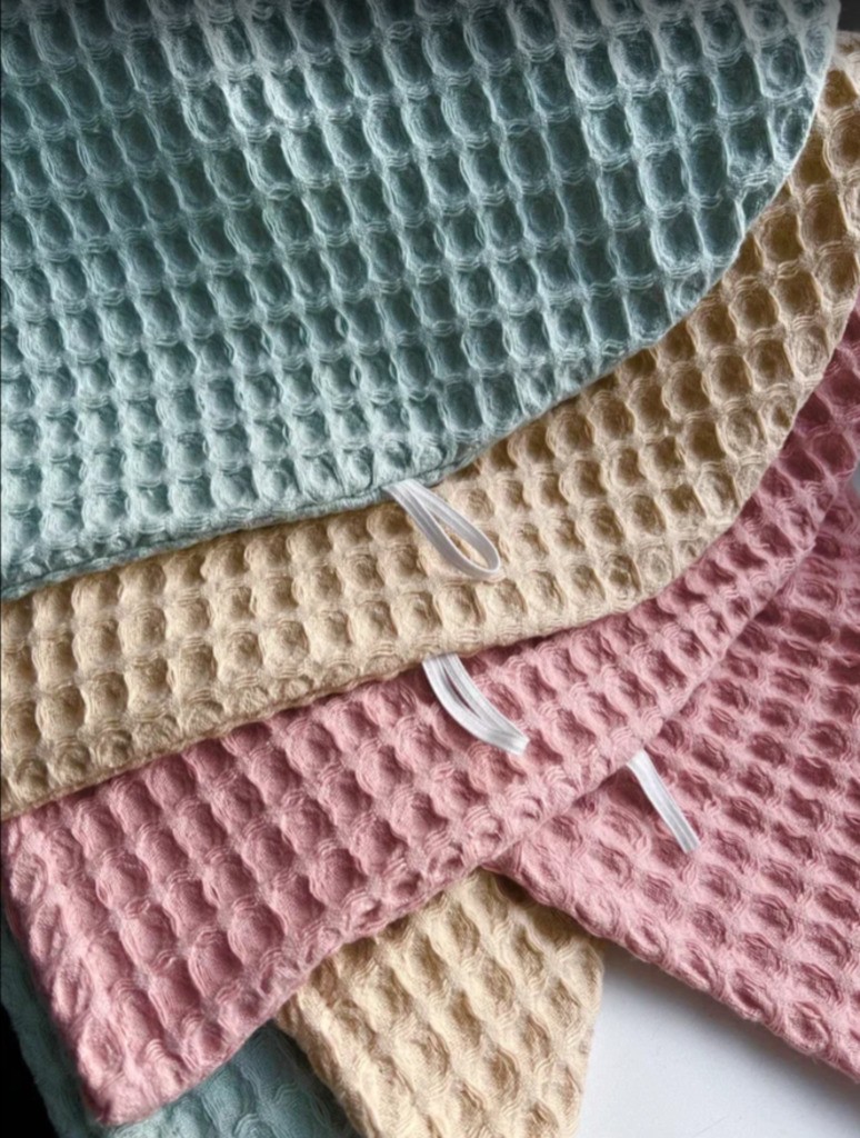 ОБРАТИТЕ ВНИМАНИЕ! Вафельное банное полотенце для волос изготовлено из полностью натурального материала, поэтому после стирки дает небольшую усадку. Это нормально и является подтверждением высокого качества вафельного полотна.