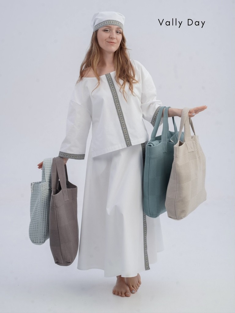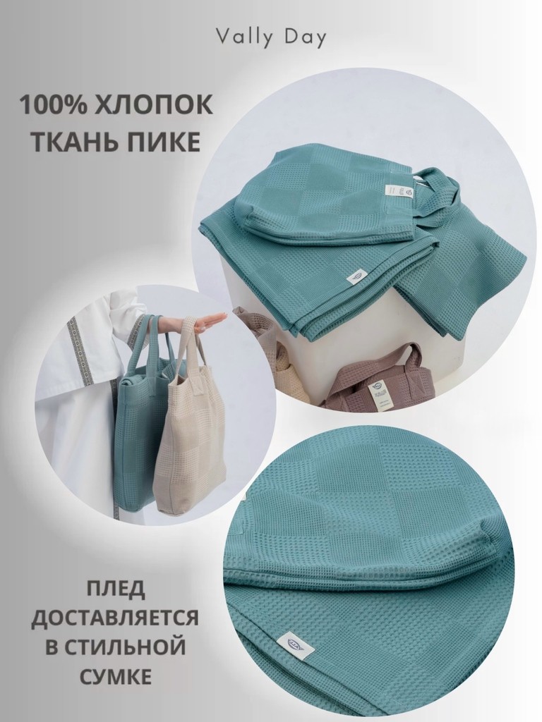 Плед 220-240см упакован в модную, стильную сумку Шоппер из этой же ткани пике.